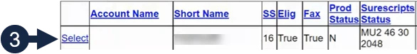- Click Select next to your Account Name. A list of all hospitals and clinics under the account will display.