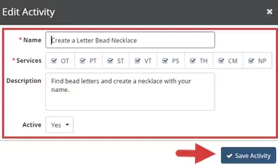 NOTE: Admins Can Import and Add New Home Activities from the Admin Tab. Only Admins can import Ensora Rehab Therapy’s premade home activities.