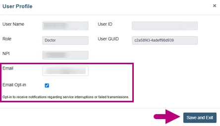 Opt-in to receive email notifications for service interruptions and failed transmissions in your user profile.
