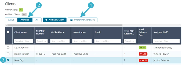 6. Re-archive the client to maintain your Archive Plan or to access another client's records.
