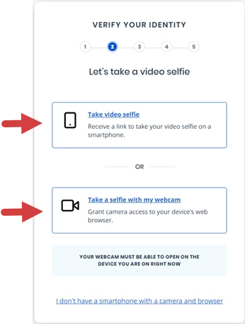 - Click to select a Selfie option, then follow the prompts to take a selfie via your phone or webcam.