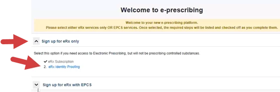 - Click Sign up for eRx only on the Welcome to e-prescribing screen.