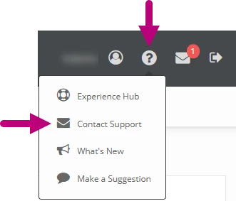 Click the Help Menu icon in the upper right corner, then select Contact Support to send a message to the support team.