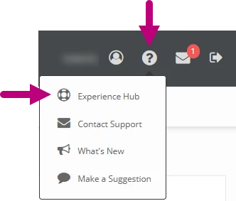 Click the Help Menu icon in the upper right corner, then select Experience Hub.