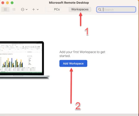 - After that installs, open the app and click on the Workspaces button across the top of the window, and click Add Workspace in the center of the screen.