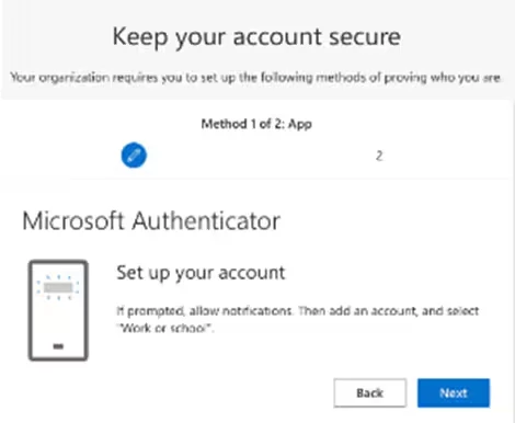 NOTE: You must have the Microsoft Authenticator App installed on your device to complete the next part of the process.