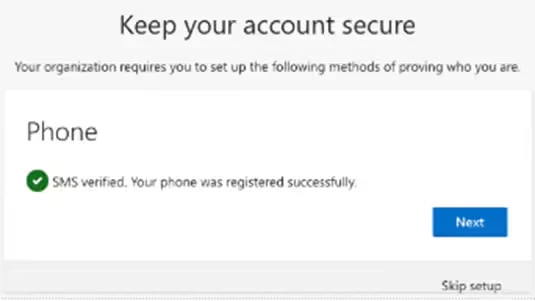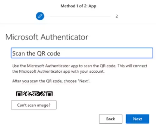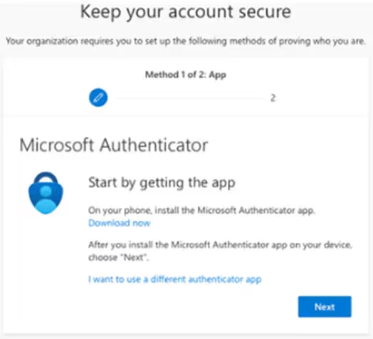 - Click Next again to indicate that you have the Microsoft Authenticator App installed on your device.
