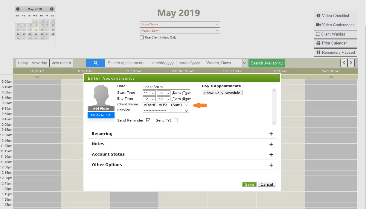 Once you save the client appointment, the Preferred name will show on the Calendar.