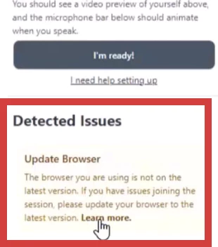 - If your internet browser is out of date, you will see this message.