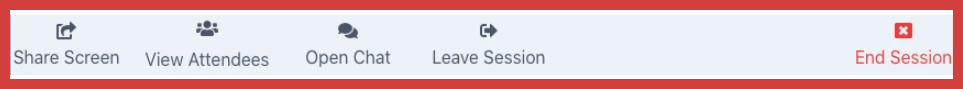 At the bottom of your screen, you can Share your Screen, View all Attendees in the Session, Open the Chat and Leave or End the Session.