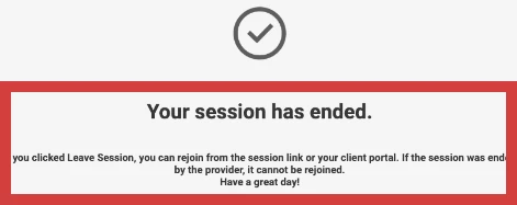The provider can end the session at any time. This pop-up displays when the session ends.