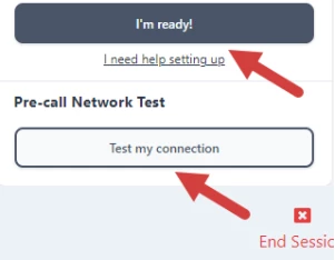- Click Test my connection to ensure you have a strong internet connection and good video/audio connectivity.