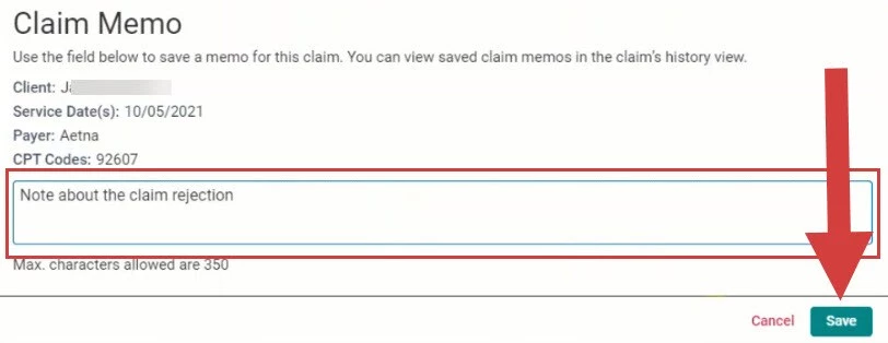 If you submit Claims with Apex, you can write a Claim Memo for Claims that have been submitted to the Clearinghouse. After a Claim Memo is added, you cannot edit or delete it. You can however, write a new Claim Memo.