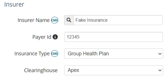 - Add Insurer Name and the Payer Id may auto-populate if you use Ensora Clearinghouse. If not, enter the Payer Id.