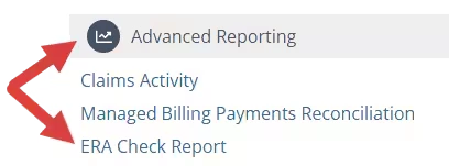 - Click Reports in the primary navigation bar and click ERA Check Report under the Advanced Reporting section.