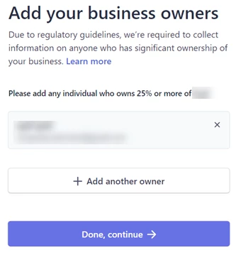 If you select this checkbox, Stripe will ask you to indicate if you are the only person who owns 25% or more of the company.
