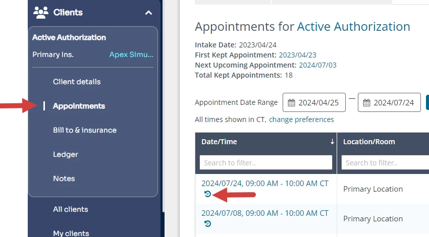 - Click Appointments in the navigation bar.