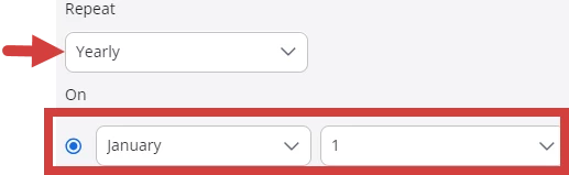 Yearly - The schedule will occur yearly according to the the month and day you want the schedule to repeat.