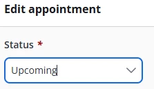 - Click the Edit Status drop down for the appointment and select new status. The Edit Status window opens.