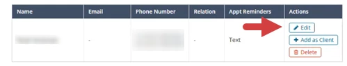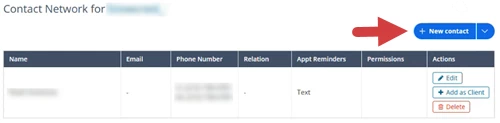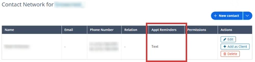 - The Appt Reminders column in the client's Contact Network list shows what types of appointment reminders are turned on for the contact.