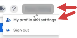 - Click your Name in top right corner and select My profile and settings.