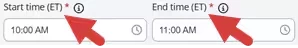 - Your preferred time zone will display next to the start/end times when you are creating the appointment.