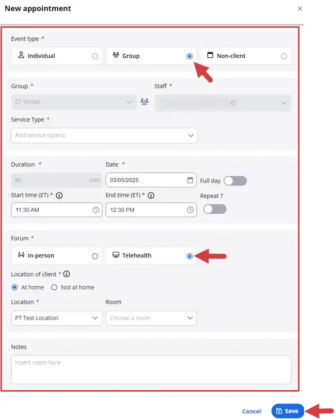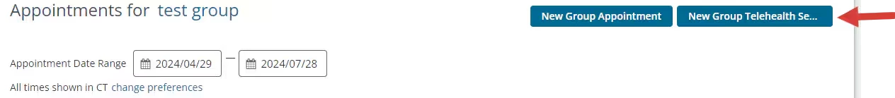 Schedule Group Telehealth Appointments from Clients Page