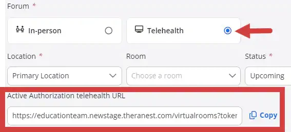 NOTE: When you click Save, the telehealth invitation link will display in the appointment window in the Telehealth URL section. You can copy & paste the URL link from here.