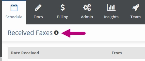 Users with permission to manage faxes can view Received Faxes from the Schedule tab. This section will not be visible to users without the permission.