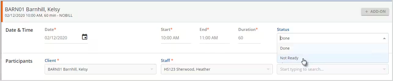 4. As long as the user has the Services: Change Status Permission and the DONE charge has no amount, the Status may be changed from Done to Not Ready.