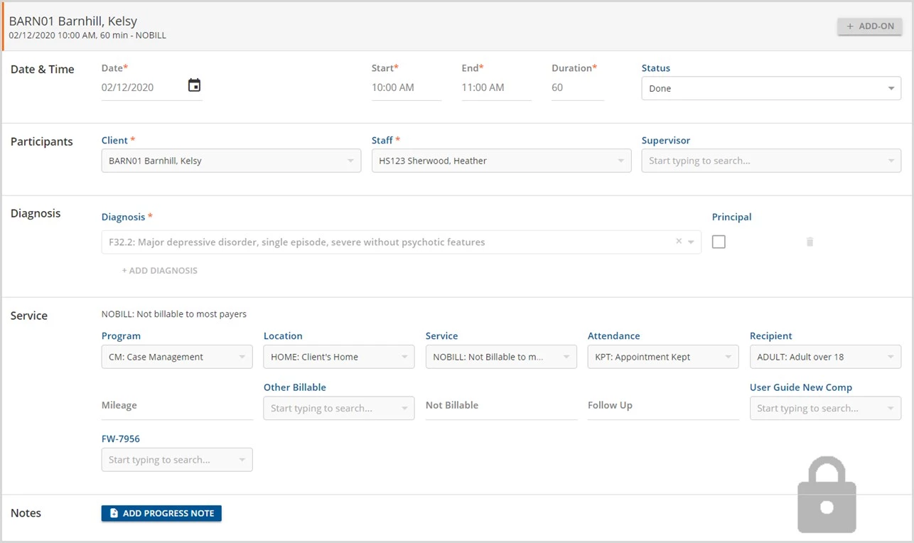 3. Typically a DONE Service is not editable as indicated by the lock in the bottom, right corner of the screen.
