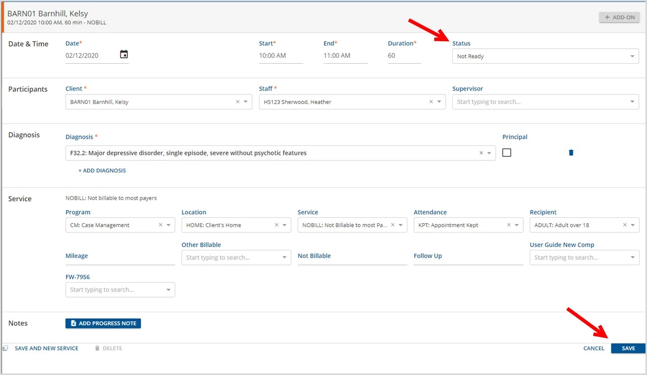Services that have been marked DONE but have no charge amount associated with them can be changed to NOT READY status for reprocessing. Previously, the only way to correct this was to proceed with the Unbilled Charges>Create Bills process. Then locate the zero charge on the Claims screen and go through the process to Reverse Service Transactions.