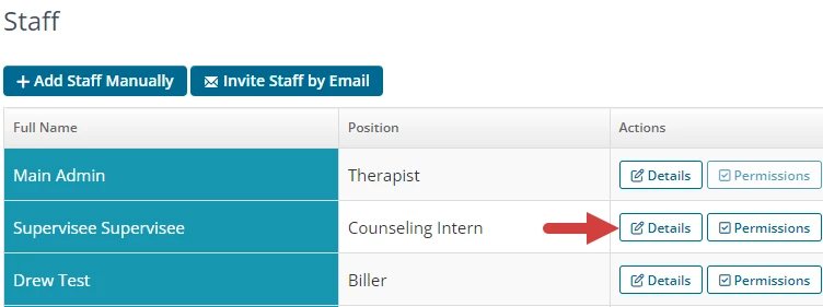 - Go to the staff Details page.