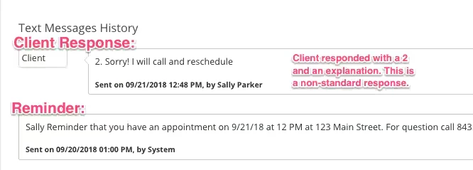 - Responds to a text with a non-standard reply - Client responds with any things other than a "1" or a "2". For example: "Sorry, can't make it" is a non-standard reply.