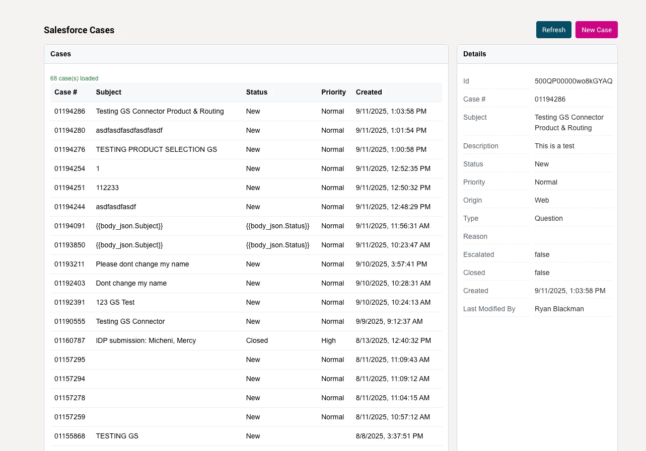 The view inside of the Support Hub should reflect your complete case history. You can click on any of the listed cases to see more details and progression information.