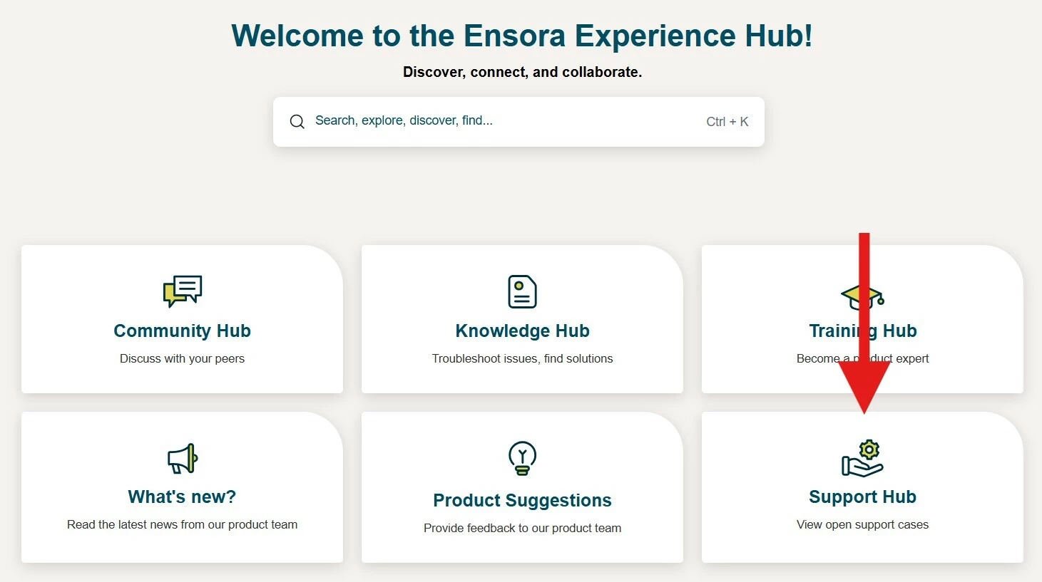 All Support Hub features are housed in this section of the Experience Hub.