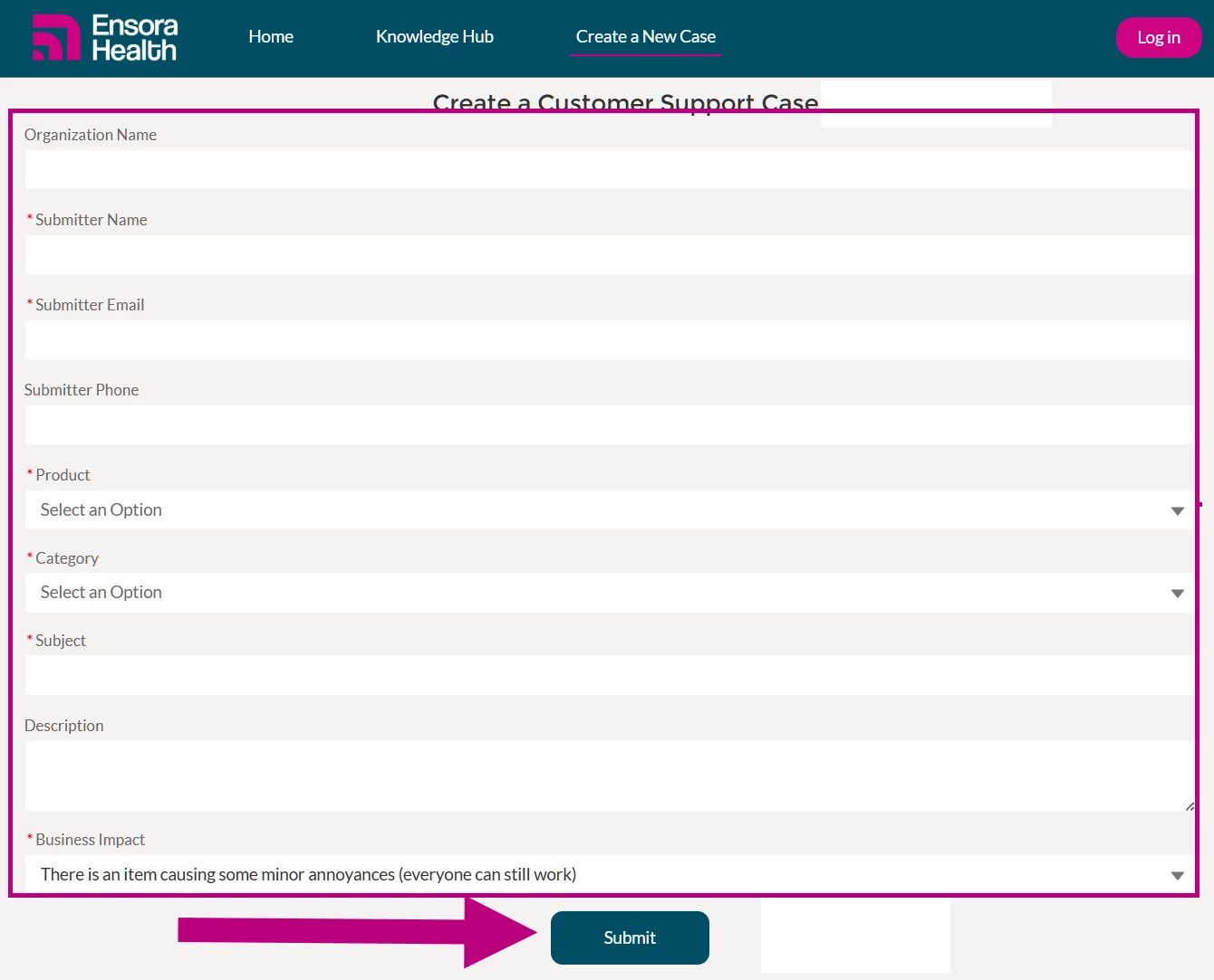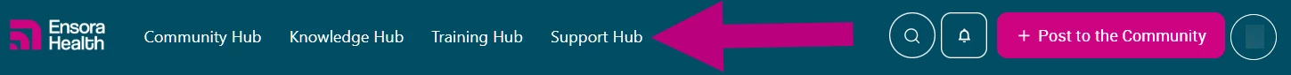 Navigate to the Support Hub at support.ensorahealth.com.