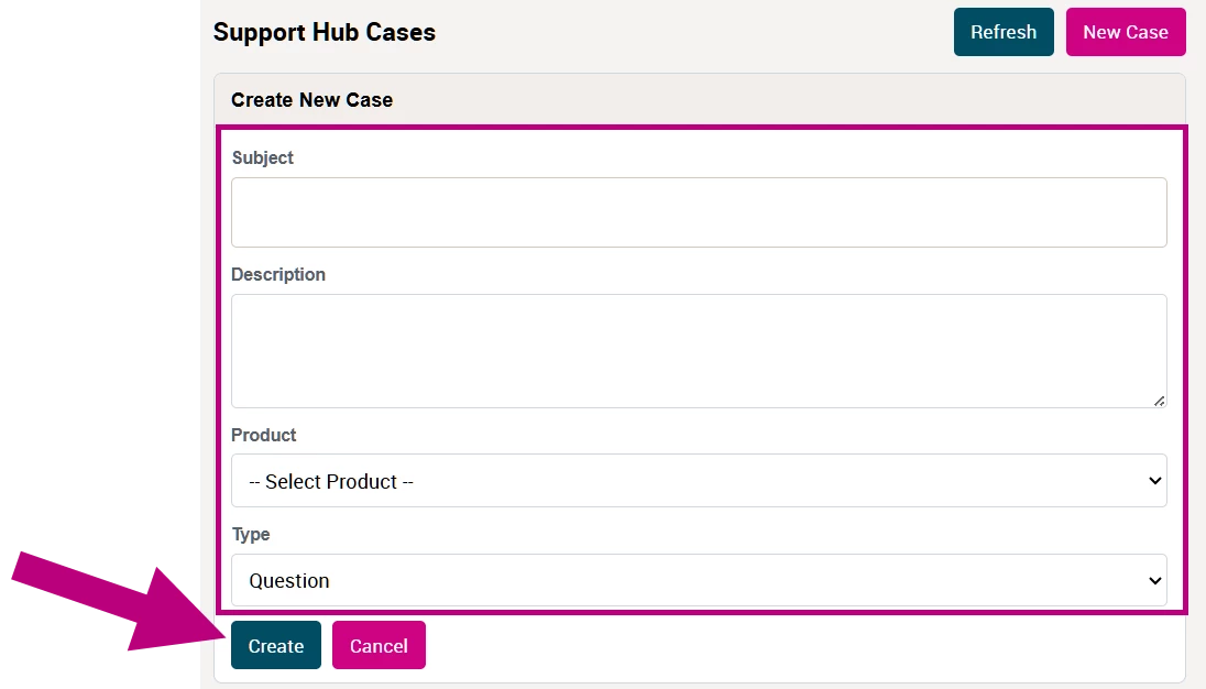 6. Click the Create button and a member of your product's dedicated support team will connect with you shortly.