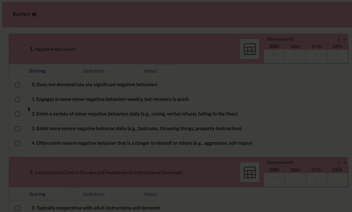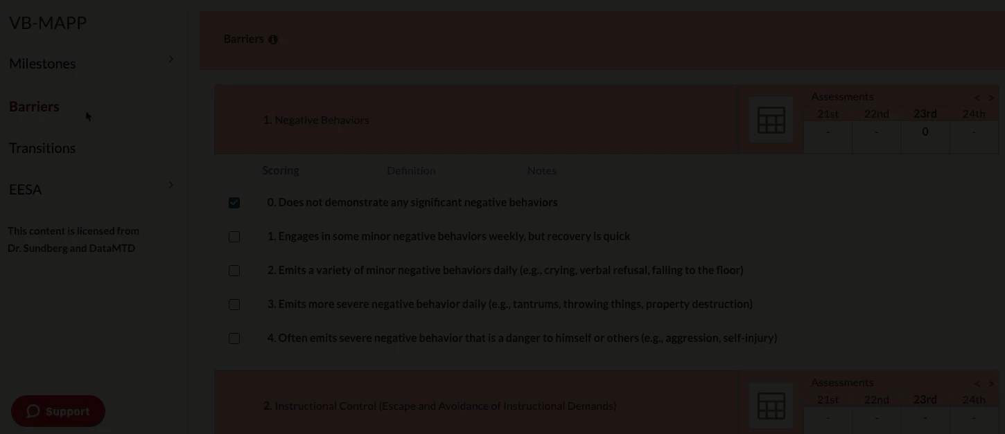 NOTE: click the Information icon at the top of the assessment > Chapter 6 to access the official VB-MAPP guide for Barriers.