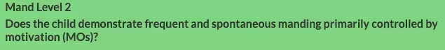 - See Chapter 4 > Mand - Level 2 in the VB-MAPP Guide to learn more about this level.