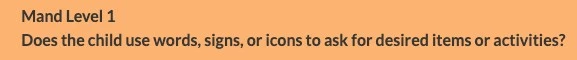 - See Chapter 3 > Mand - Level 1 in the VB-MAPP Guide to learn more about this level.