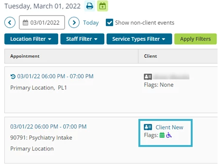 Client Flags are created to mark the Client EHR with important information related to their billing, scheduling or clinical status. After client flags are created, they can be added to the client details or to an appointment on the agenda.